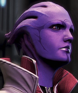 After having left the turian military, Nyreen made her way through the galaxy as a mercenary and eventually came to Omega. It was here that she encountered Aria for the first time. Nyreen was immediately taken in by Aria's beauty and her personality; specifically becoming mesmerised by the fact that Aria never let anyone else define her identity. The turian and the asari quickly formed a relationship with each other.